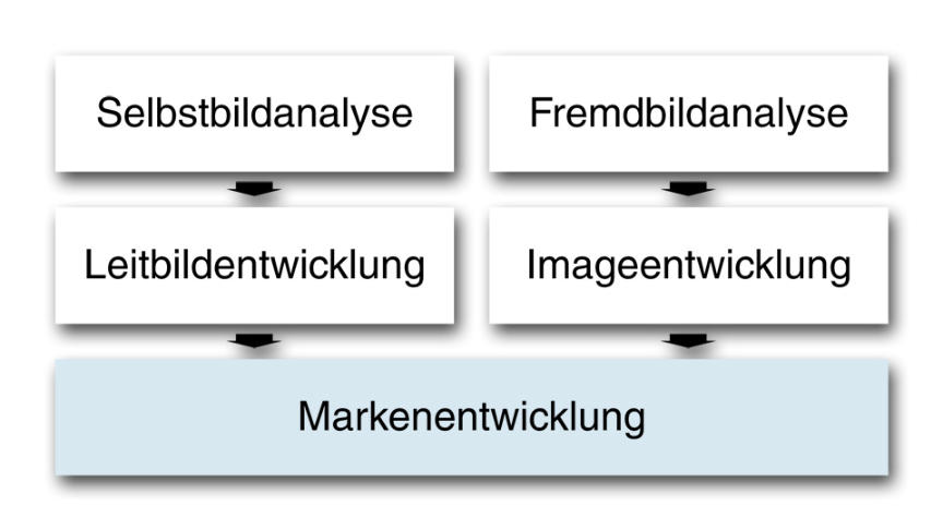 relevante Images erhoben und zu einem Positionsraum verdichtet. Die Selbstähnlichkeitsanalyse führt Leitbild und Image